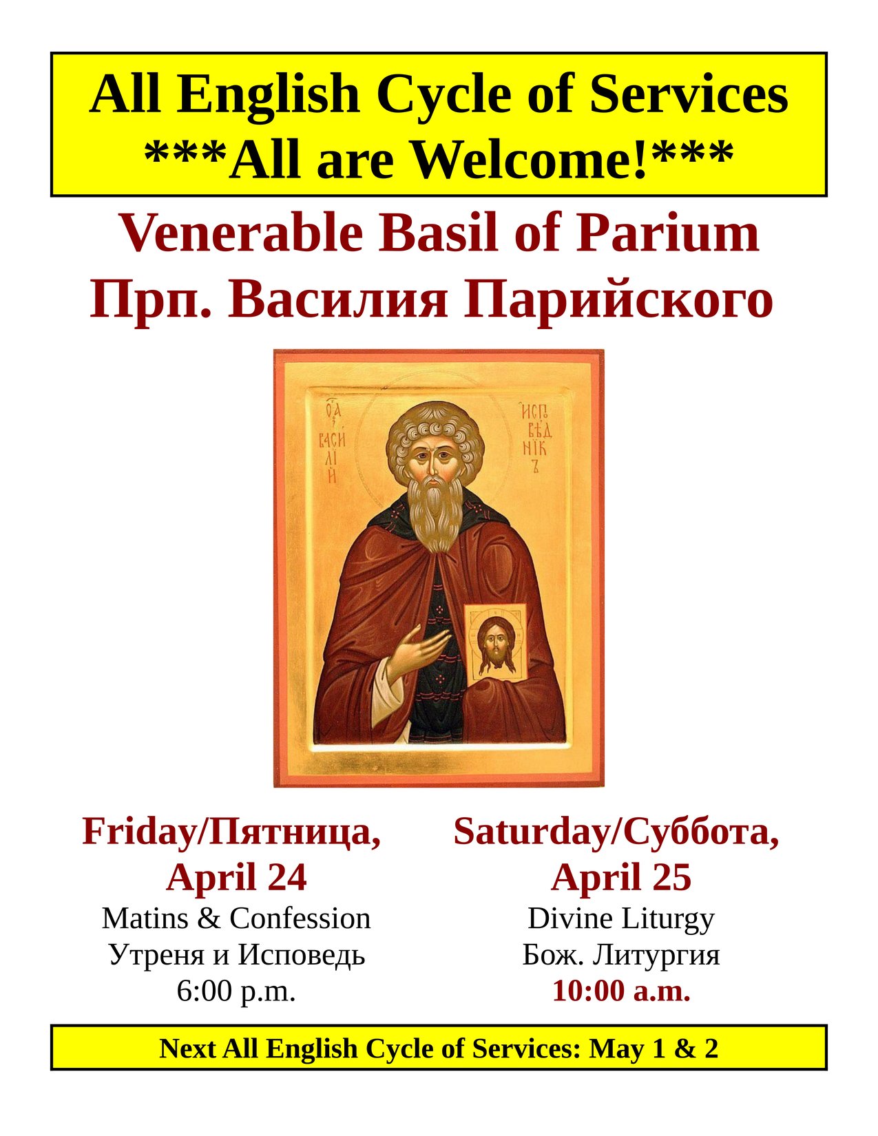 In order to help increase the general knowledge of scripture in our parish family we present here for your edification the scripture readings for the coming week. At least one Gospel Reading and one Epistle reading are assigned for each day of the year (although during Great Lent the readings are from the Old Testament). Hearing or reading only those readings appointed for Sunday merely scratches the surface of the great spiritual wealth that the scriptures provide us. Some of the readings are easily understandable – others are less so. As Orthodox Christians we do not make private interpretation of scripture, but rather consult the fathers of the Church for their explanations to aid us in our understanding. Those wishing to have access to such explanations are asked to contact Fr. Gregory or inquire in the kiosk for further reading in this regard. Bibles may also be acquired in the kiosk.