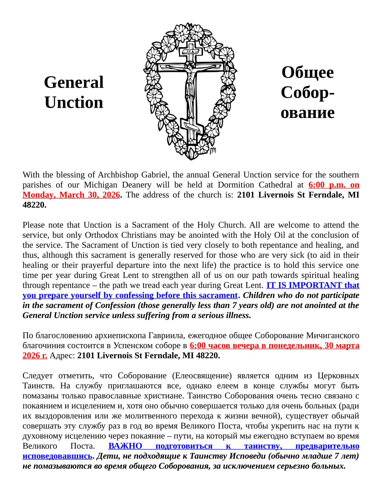 Michigan Deanery Unction - Two Weeks from Today