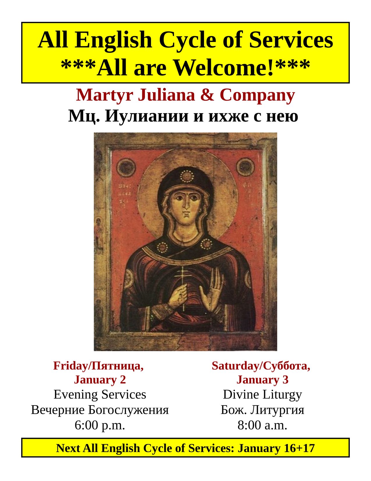 Saturday Vigil: 6:00 p.m. (Except Pascha)