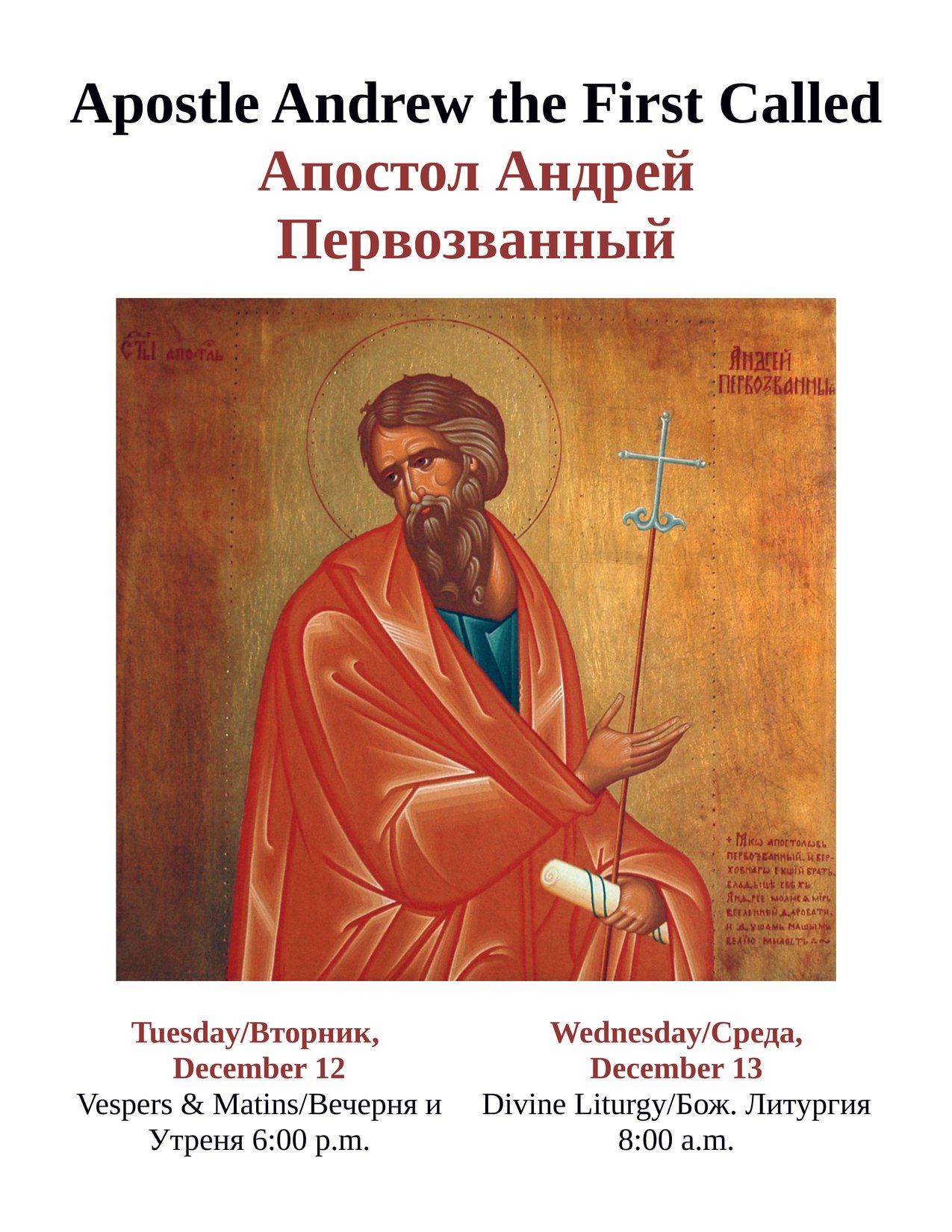 St. Andrew the First Called this Saturday
