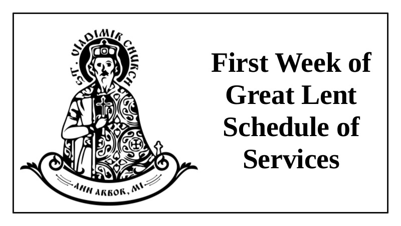 This year, with the blessing of His Eminence Archbishop Gabriel, we will celebrate the beautiful Divine Liturgy of the Presanctified Gifts throughout Great Lent on Wednesday evenings. Matins begins at 3:00 p.m. Liturgy will begin at approximately 6:00 p.m. Following each of these services our St. Xenia Sisterhood will organize a light Lenten dinner. Please contact our Head Sister, Ksenia Nikulshina (headsister@stvladimiraami.org or see her in church) if you would like to help with the dinner. We have excellent Lenten recipes to share if you’d like to try something new! Please join us for these remarkably beautiful and meaningful Lenten evening services and for mid-week fellowship with your parish family at the meal afterwards!