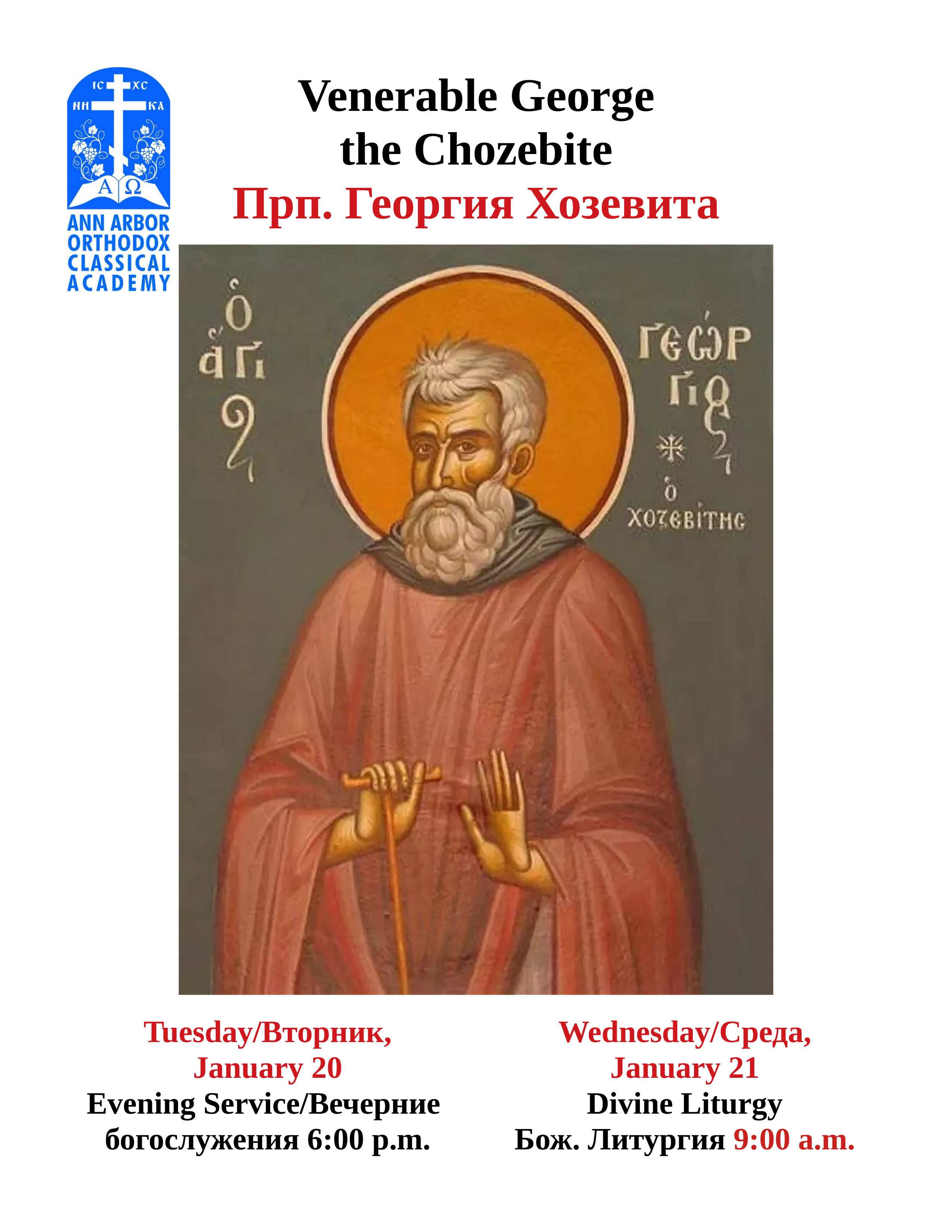 Regular Services: Saturday Vigil: 6:00 p.m. (Except Pascha) Sunday Divine Liturgy: 10:00 a.m. (Except Pascha) Full Service Schedule: Phone: (734) 475-4590 Address: 9900 Jackson Rd., Dexter, MI 48130-9426 Click for Directions | Google Map |