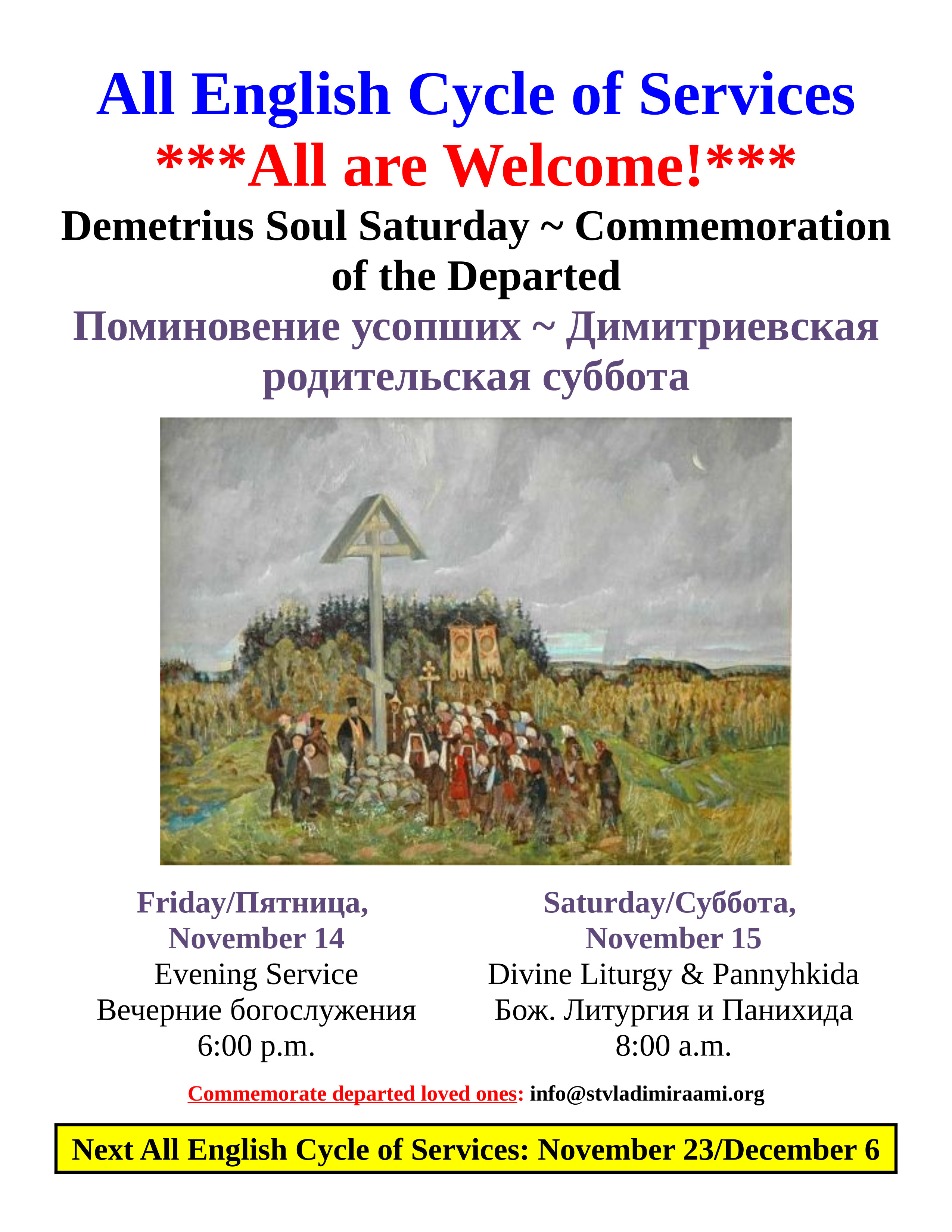 Saturday Vigil: 6:00 p.m. (Except Pascha)